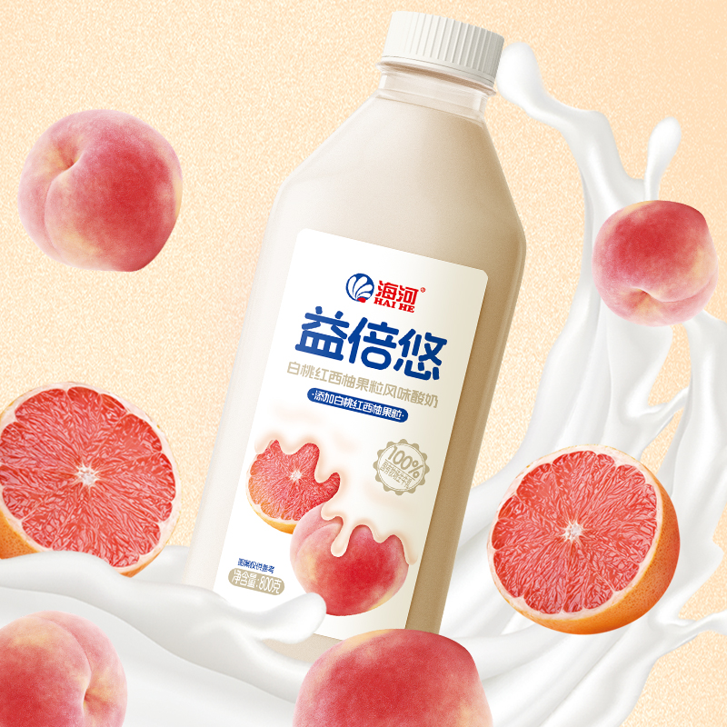 益倍悠白桃紅西柚果粒風味酸奶